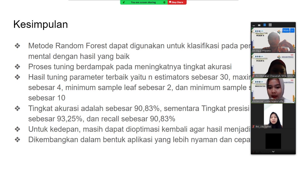 Agus Priyono, M.Kom, seorang dosen Informatika Medis UMLA dalam bidang kecerdasan buatan, memberikan presentasi mengenai METODE RANDOM FOREST UNTUK MEMUDAHKAN KLASIFIKASI DIAGNOSIS PENYAKIT MENTAL.