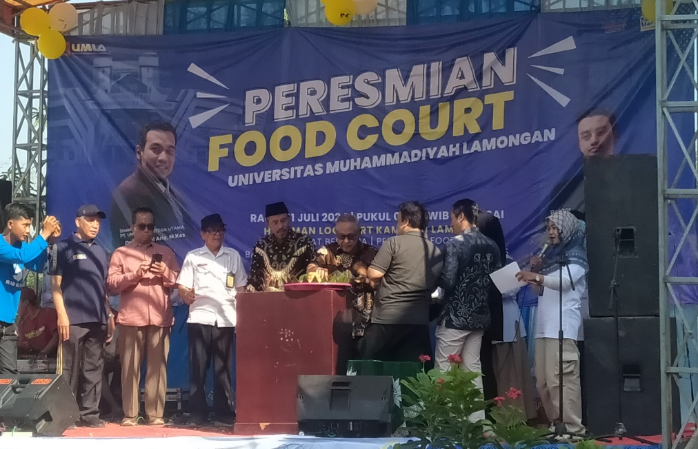Lamongan, 31 Juli 2024 - Universitas Muhammadiyah Lamongan (UMLA) meresmikan foodcourt baru di area kampus dengan mengadakan acara senam pagi bersama dan pembagian voucher makan gratis bagi seluruh civitas akademika. Acara ini disambut dengan antusias oleh mahasiswa, dosen, dan staf yang hadir. Acara ini di buka oleh Rektor UMLA Prof. Aziz dan Wakil Rektor I Dr. Aris serta BPH UMLA turut memeriahkan. Disamping itu turut juga mahasiswa asing yang sedang melakukan summer course di UMLA. Selain peresmian food court, kegiatan ini juga sekaligus membuka dan melepaskan mahasiswa Kuliah Kerja Nyata (KKN) UMLA yang akan diterjunkan di Kecamatan Sekaran oleh Ketua LPPM UMLA.